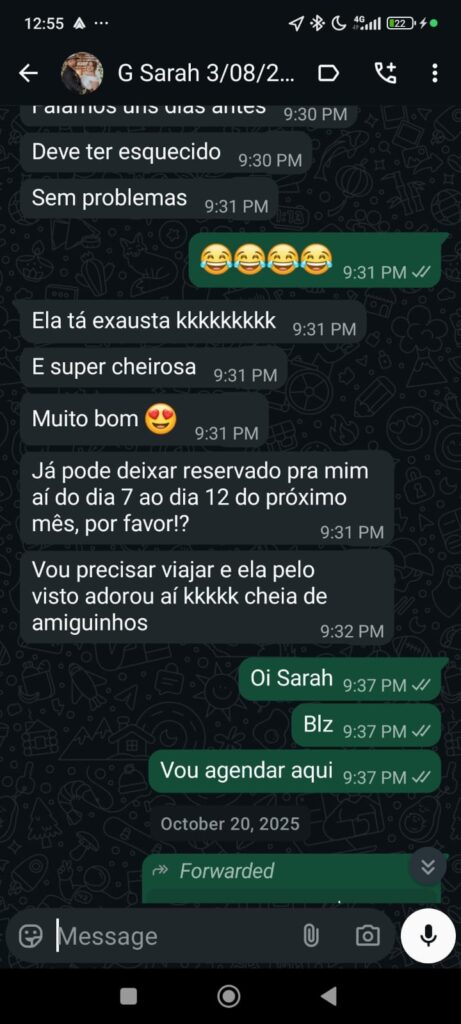 Com 7 anos de experiência, mais de 500 famílias atendidas e uma formação sólida em cursos como Saúde do Cão e Condicionamento Operante, ofereço um serviço profissional, ético e personalizado. Diferente de métodos caseiros, que podem ser inconsistentes, meu trabalho combina ciência comportamental e prática para resultados confiáveis. Minha missão é fortalecer o vínculo entre você e seu cão, com respeito e dedicação.